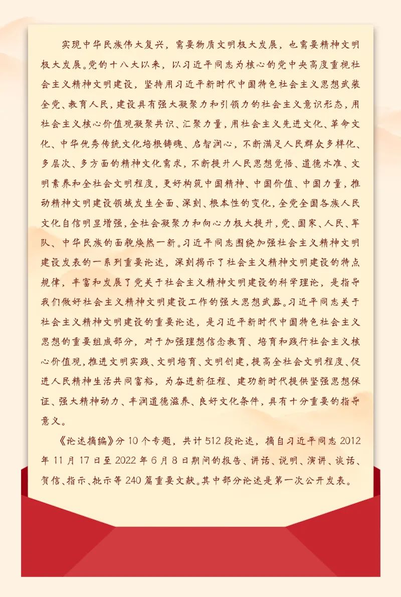只有站在時代前沿,引領風氣之先,精神文明建設才能發揮更大威力。當前,社會上思想活躍、觀念碰撞,互聯網等新技術新媒介日新月異,我們要審時度勢、因勢利導,創新內容和載體,改進方式和方法,使精神文明建設始終充滿生機活力。抓精神文明建設要辦實事、講實效,緊緊圍繞促進人民福祉來進行,堅決反對形式主義、官僚主義,努力滿足人民群眾不斷增長的精神文化需求。各級黨委要擔負好自己的責任,切實抓好精神文明建設各項工作。