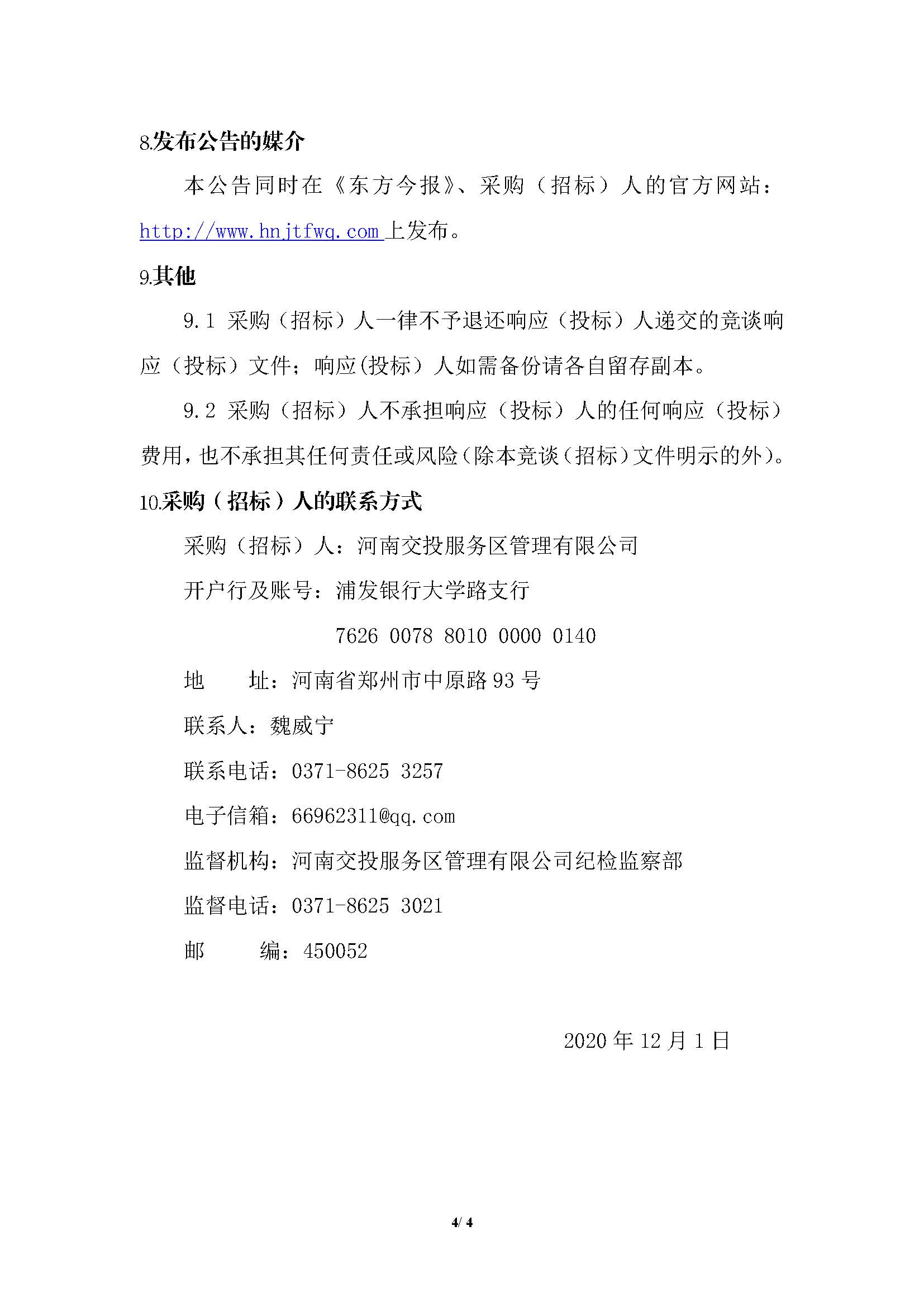 凡有意向的響應(投標)人可于2020年 12月 4日至12月 10日上午09:00-11:30、下午14:30-17:00期間(節假日除外)持營業執照本(正副本均可)、資質證書、法定代表人委托書和委托人身份證(以上證照原件及加蓋公章的彩色復印件各一套),到采購(招標)人的駐地河南省鄭州市中原路93號辦公樓1909室,經資格預審(符合本公告“第三條”)合格后,免費領取競談(招標)文件,逾期不發。