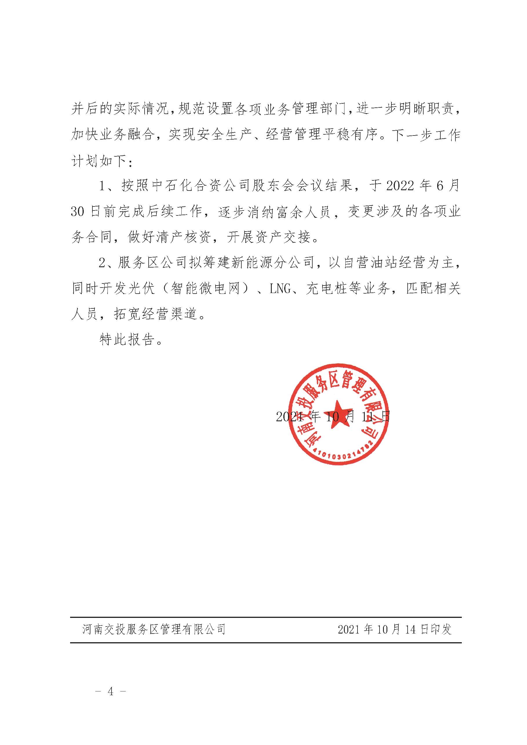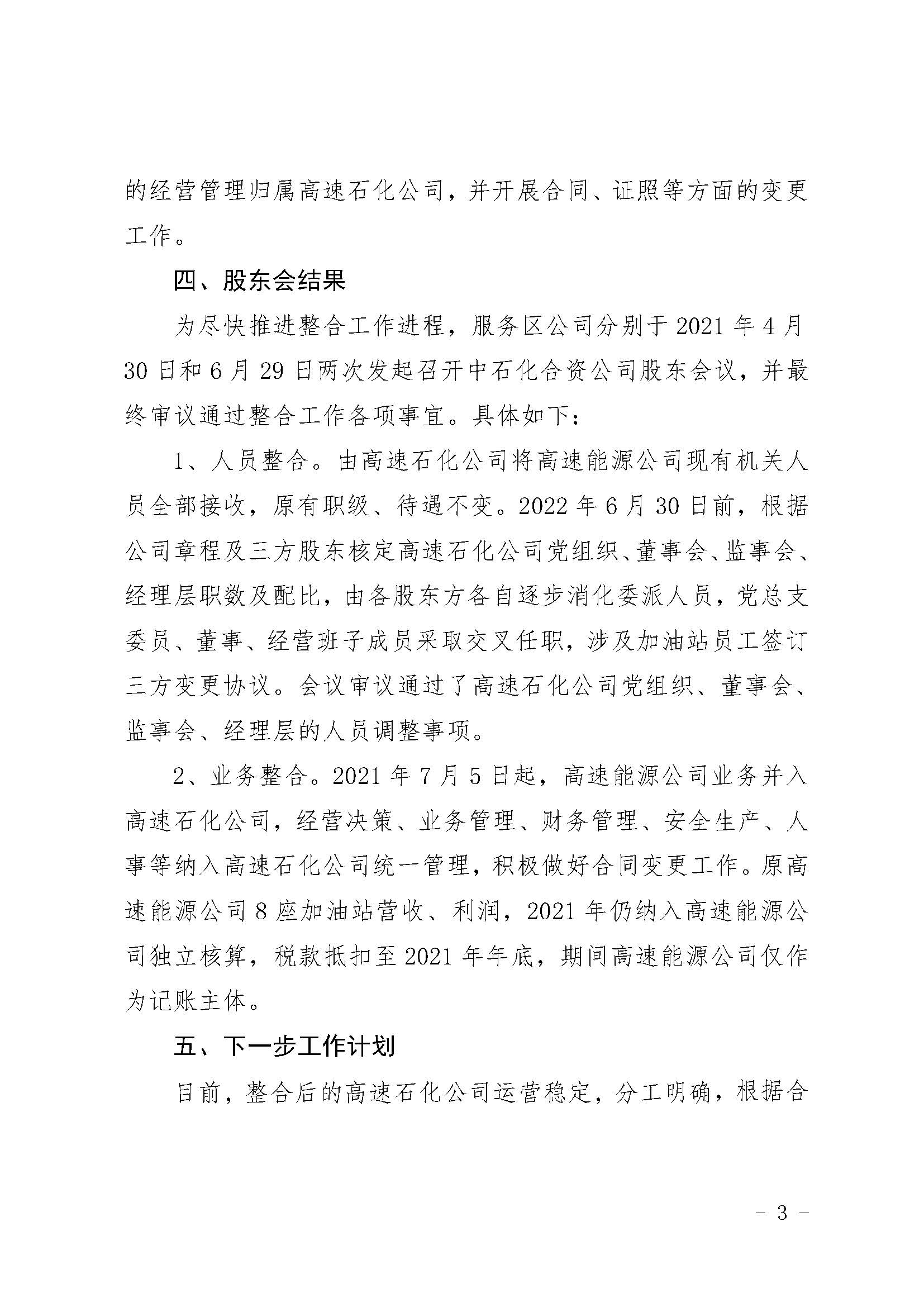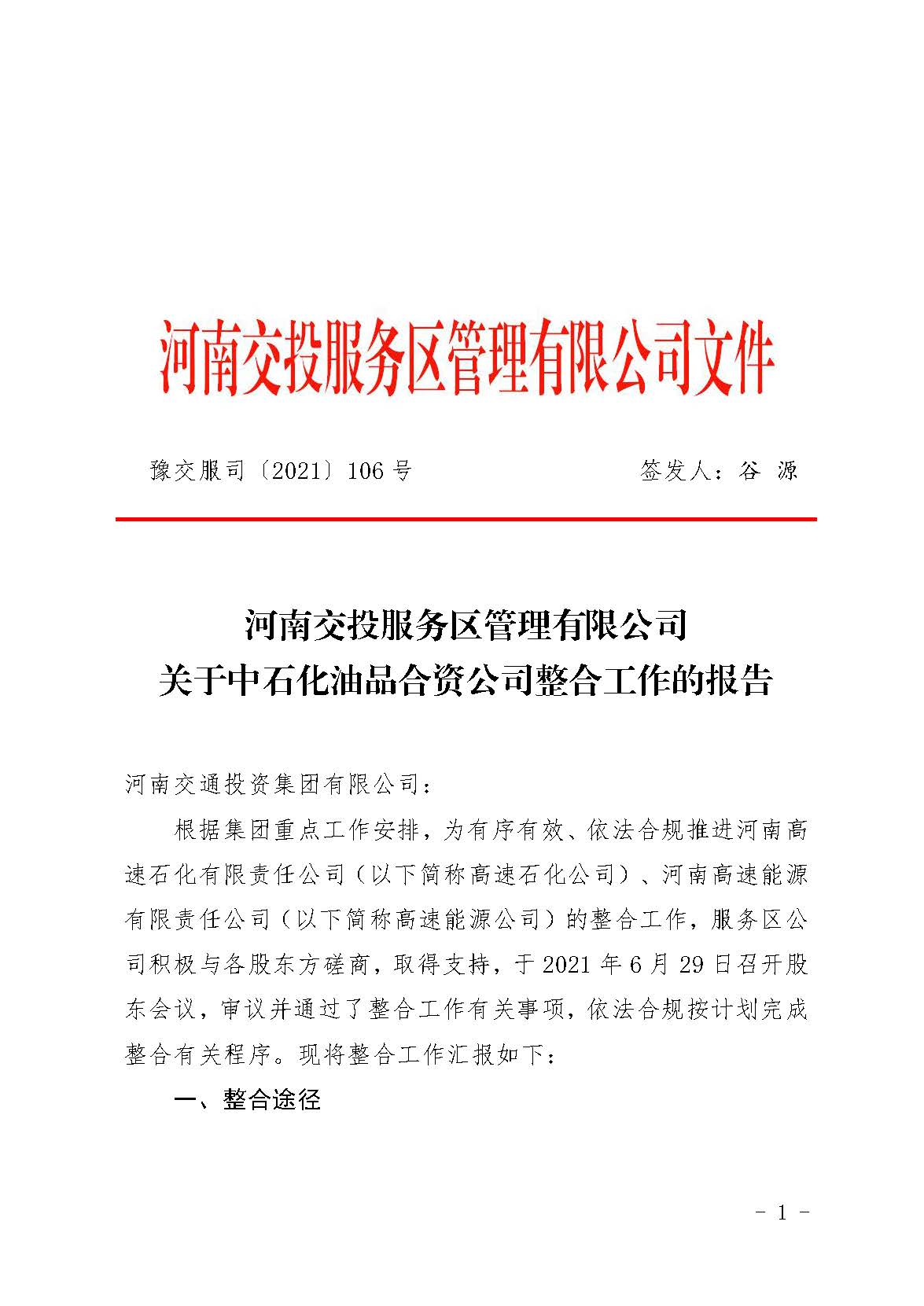 河南交投服務區管理有限公司關于中石化油品合資公司整合工作的報告