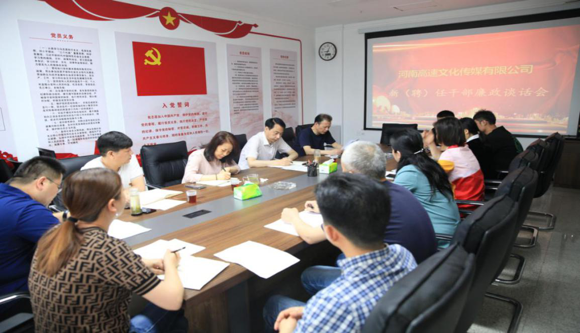 文化傳媒公司召開新調(diào)整干部及新聘業(yè)務(wù)經(jīng)理集體廉潔談話會