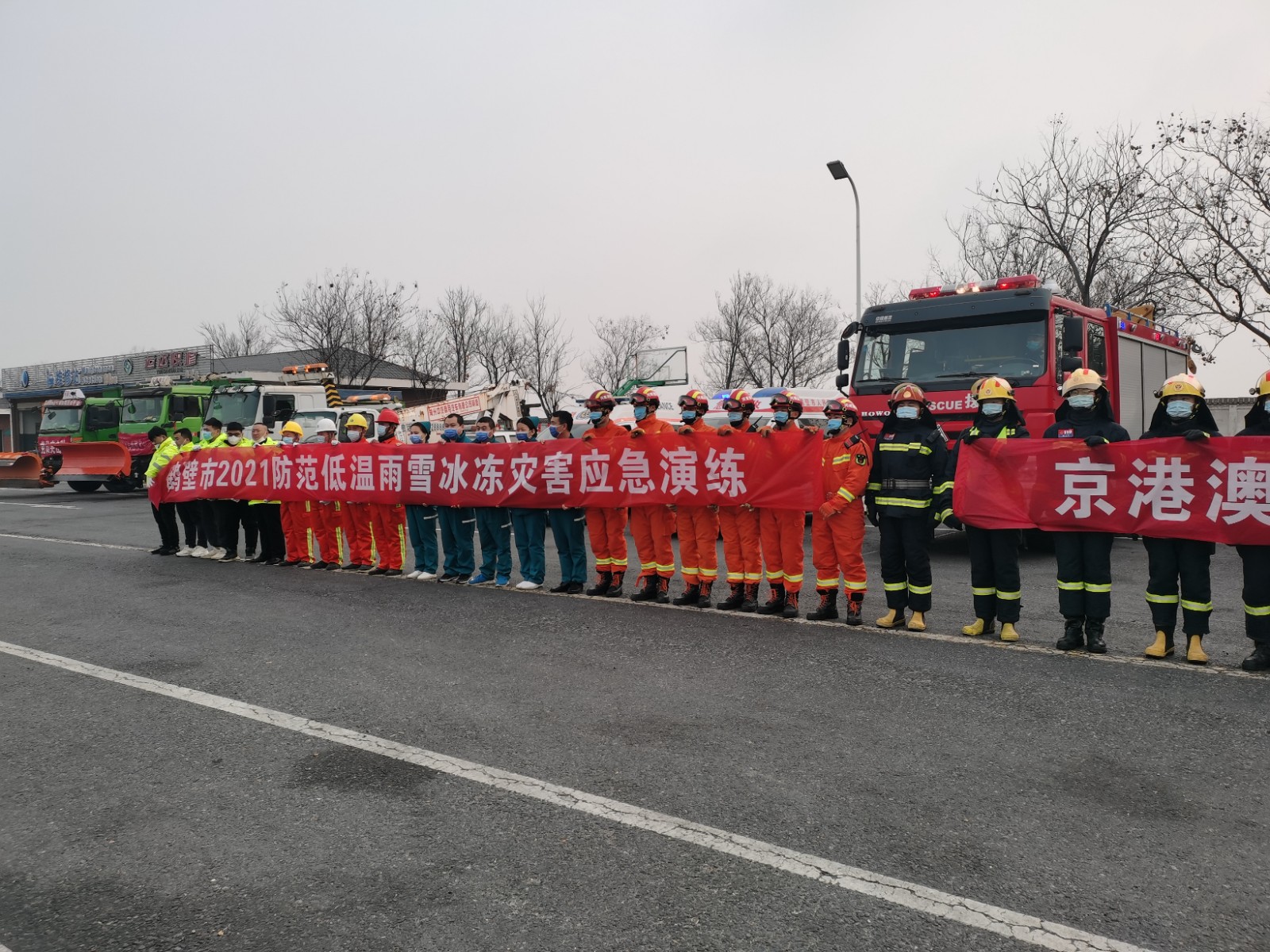 鶴壁市防范低溫雨雪冰凍天氣災害應急演練在鶴壁服務區(qū)進行