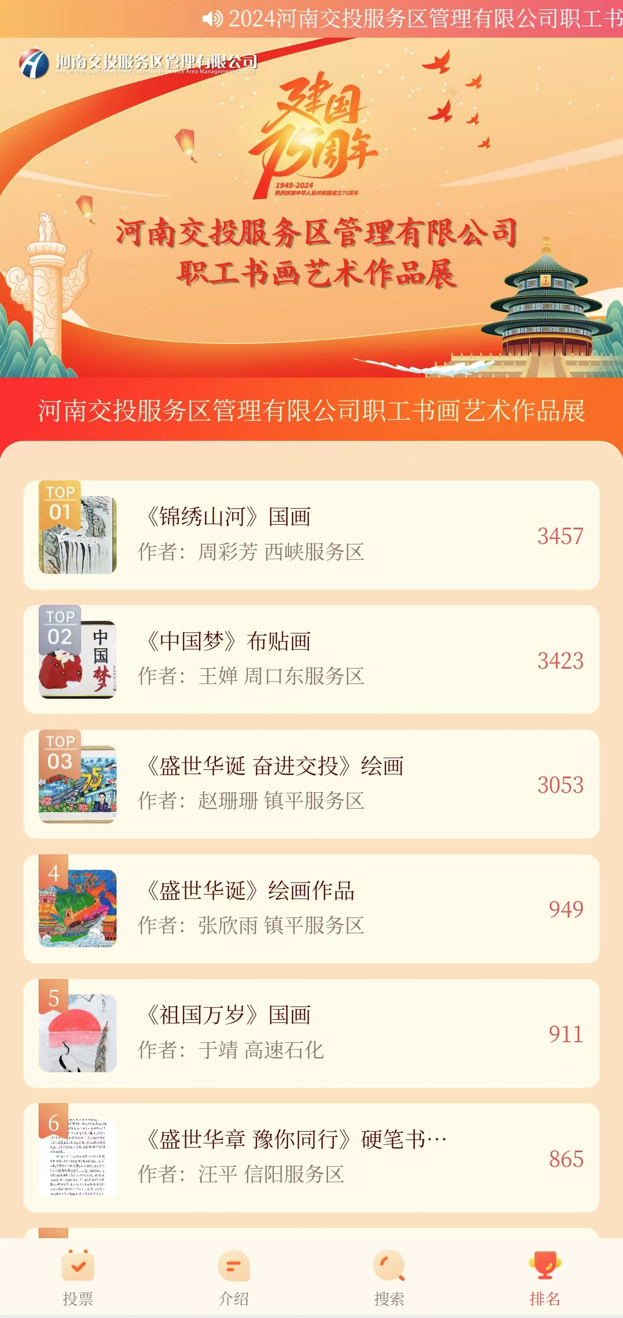 來源: 本站 發(fā)布時間: 2024-10-16為慶祝新中國成立 75 周年,公司組織舉辦職工書畫藝術作品展評選活動,此次活動共征集到 37個作品,吸引了 3萬余人參與投票。活動中,職工們以書畫藝術為載體,用筆墨丹青抒發(fā)對祖國的熱愛與祝福,展現了職工們的藝術才華和精神風貌。本次評選活動豐富了職工的文化生活,激發(fā)了…