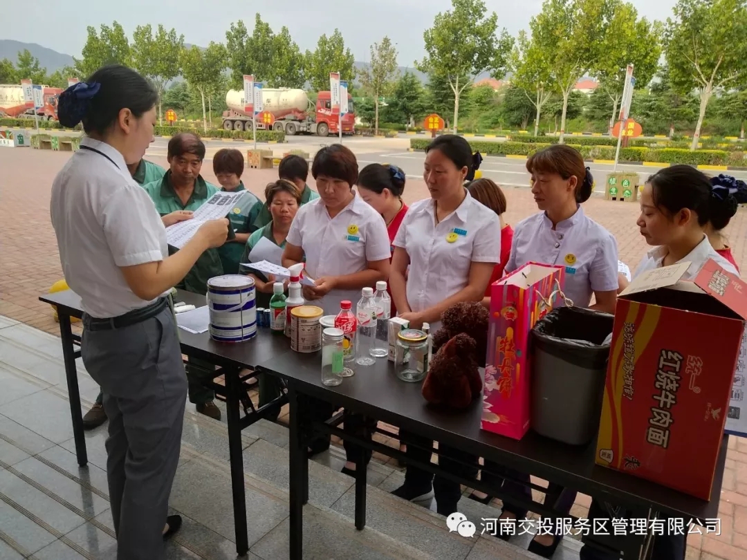 為深入貫徹落實上級“三大行動”、“百站百區提質”工作部署,增強全體工作人員對垃圾分類知識的了解,讓更多的人參與實踐垃圾分類的行動中來,倡導關愛自然,節約資源,保護環境的文明新風尚,7月24日,汝陽服務區組織開展垃圾分類知識宣講培訓活動。 為了讓員工更加清楚明白的了解垃圾分類,宣傳分類理念,汝陽服務區公共服務部提前搜集了塑料瓶、蔬菜、電池、果殼等,通過以實物垃圾的形式宣傳講解垃圾分類相關知識,現場組織人員進行了演示分類處理投放程序,加深了大家對垃圾分類重要性的認識和具體操作方法的認識。本次活動得到了全體員工的歡迎和贊許,通過這種寓教于樂的方式,讓垃圾分類的理念深入人心,提高了服務區全體人員對垃圾分類的知曉率和參與率,切實推進了垃圾分類的宣傳工作。活動結束后,服務區要求各部門高度重視垃圾分類工作,從自身做起,為碧水藍天貢獻應有的力量。