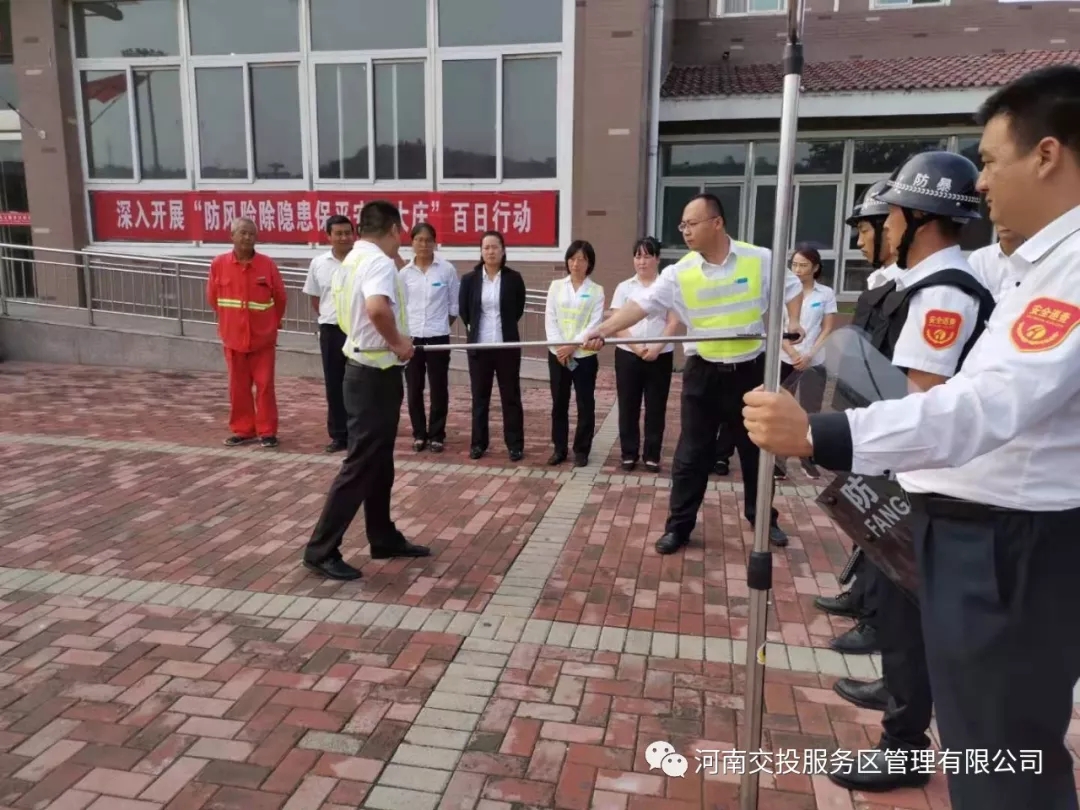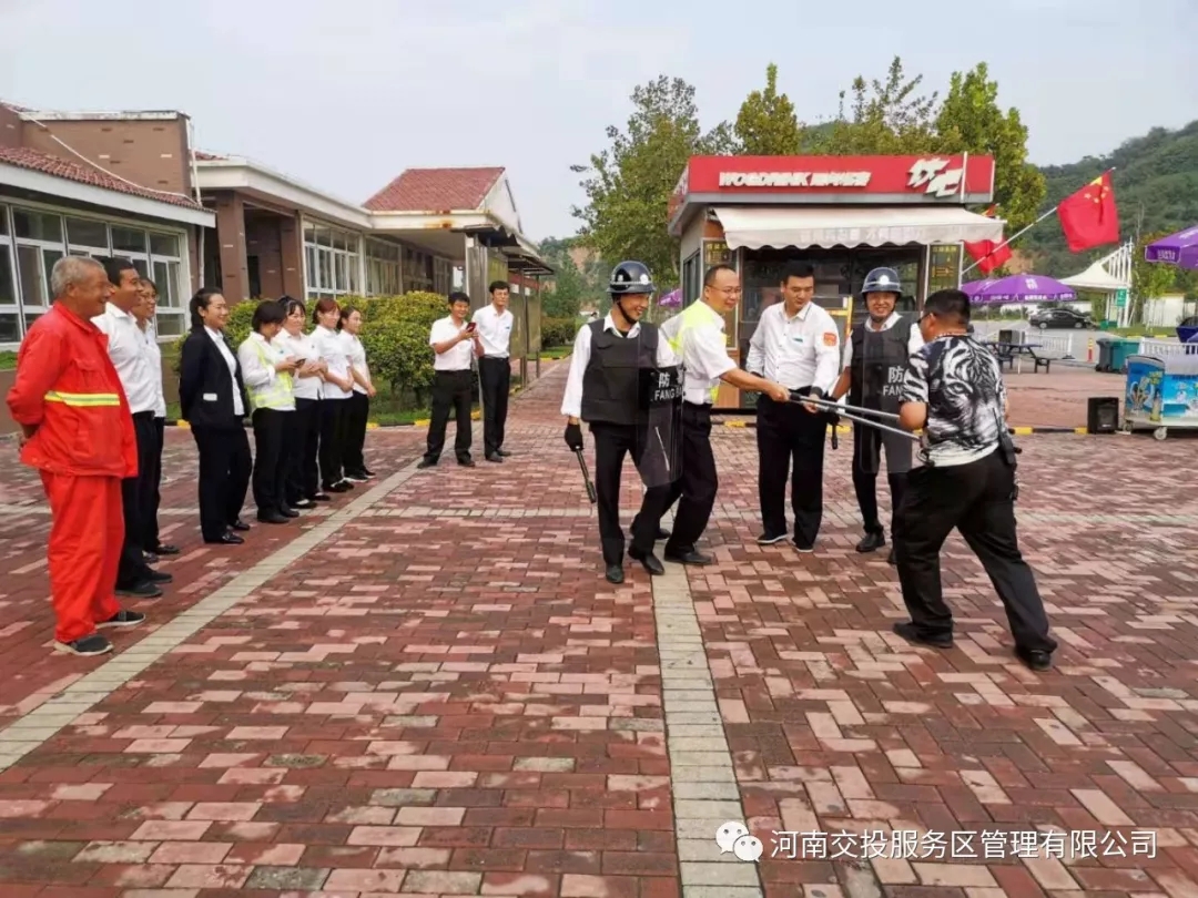 9月18日,鞏義服務區在北區廣場開展“反恐防暴”演練。演練模擬了歹徒沖擊服務區,服務區立刻啟動應急預案,疏散人群,保安迅速用防暴鋼叉、盾牌、防刺手套等防暴裝備制服了歹徒。演練前后,服務區組織人員集中講解了應急預案的詳細措施,防暴裝備的使用方法及實戰技巧。 通過此次演練,加強了服務區員工自我保護意識及自救互救的能力,同時增強了憂患意識,時刻緊繃反恐防范這根弦,為建國70周年營造安全穩定高速公路環境。