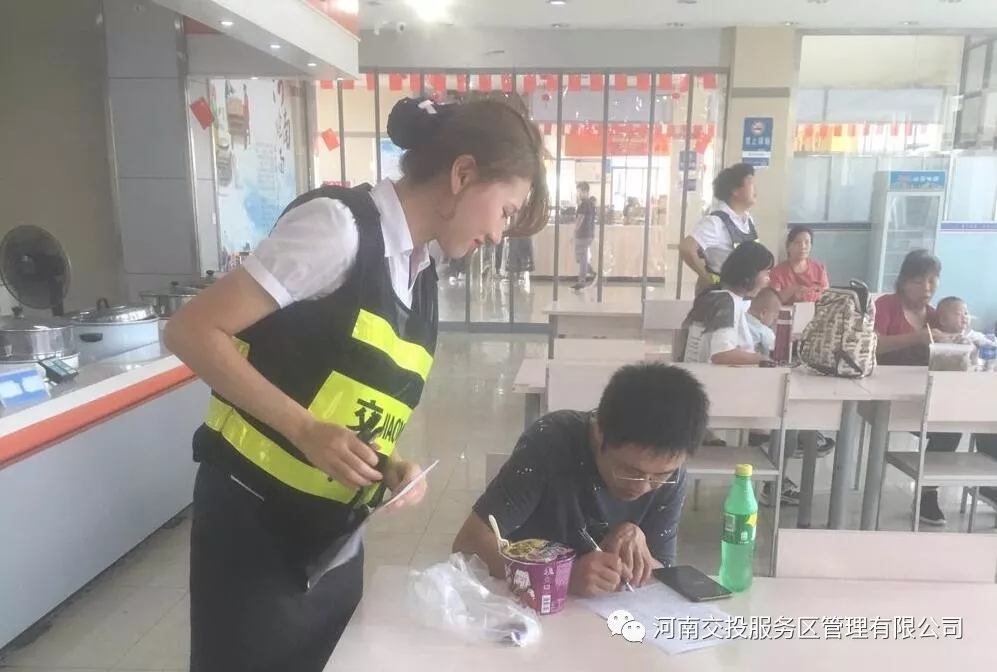 各服務(wù)區(qū)完善相關(guān)便民措施,開展志愿者服務(wù)、愛心救助等形式多樣的服務(wù)活動(dòng),樹立良好的社會(huì)形象,為司乘人員提供幫助,如鶴壁服務(wù)區(qū)10月3日接到參加國慶節(jié)70年慶典凱旋歸來的河南鵝坡武校師生,共計(jì)20余輛大巴車、1600余名人員要在服務(wù)區(qū)停留休整的通知后,緊急啟動(dòng)應(yīng)急服務(wù)保障預(yù)案,全力為凱旋團(tuán)人員、車輛提供服務(wù)保障,圓滿完成保障任務(wù)。周口東服務(wù)區(qū)成立了“小紅帽”黨員青年志愿者服務(wù)隊(duì),在國慶假日期間深入到餐廳、超市、廣場等區(qū)域,為廣大顧客做好咨詢引導(dǎo)、秩序維護(hù)、助殘幫老等志愿服務(wù)工作,最大限度的為顧客提供的幫助,受到廣泛好評。中牟南服務(wù)區(qū)開展司乘滿意度調(diào)查活動(dòng) 各服務(wù)區(qū)完善社會(huì)監(jiān)督機(jī)制,設(shè)立服務(wù)意見箱,積極借鑒、吸納司乘人員提出的合理化意見和建議,如中牟南服務(wù)區(qū)開展司乘滿意度調(diào)查活動(dòng),有效促進(jìn)了國慶期間服務(wù)區(qū)服務(wù)保通工作的順利開展。節(jié)日期間,公司各服務(wù)區(qū)秩序井然,未出現(xiàn)斷貨、食品安全等問題。
