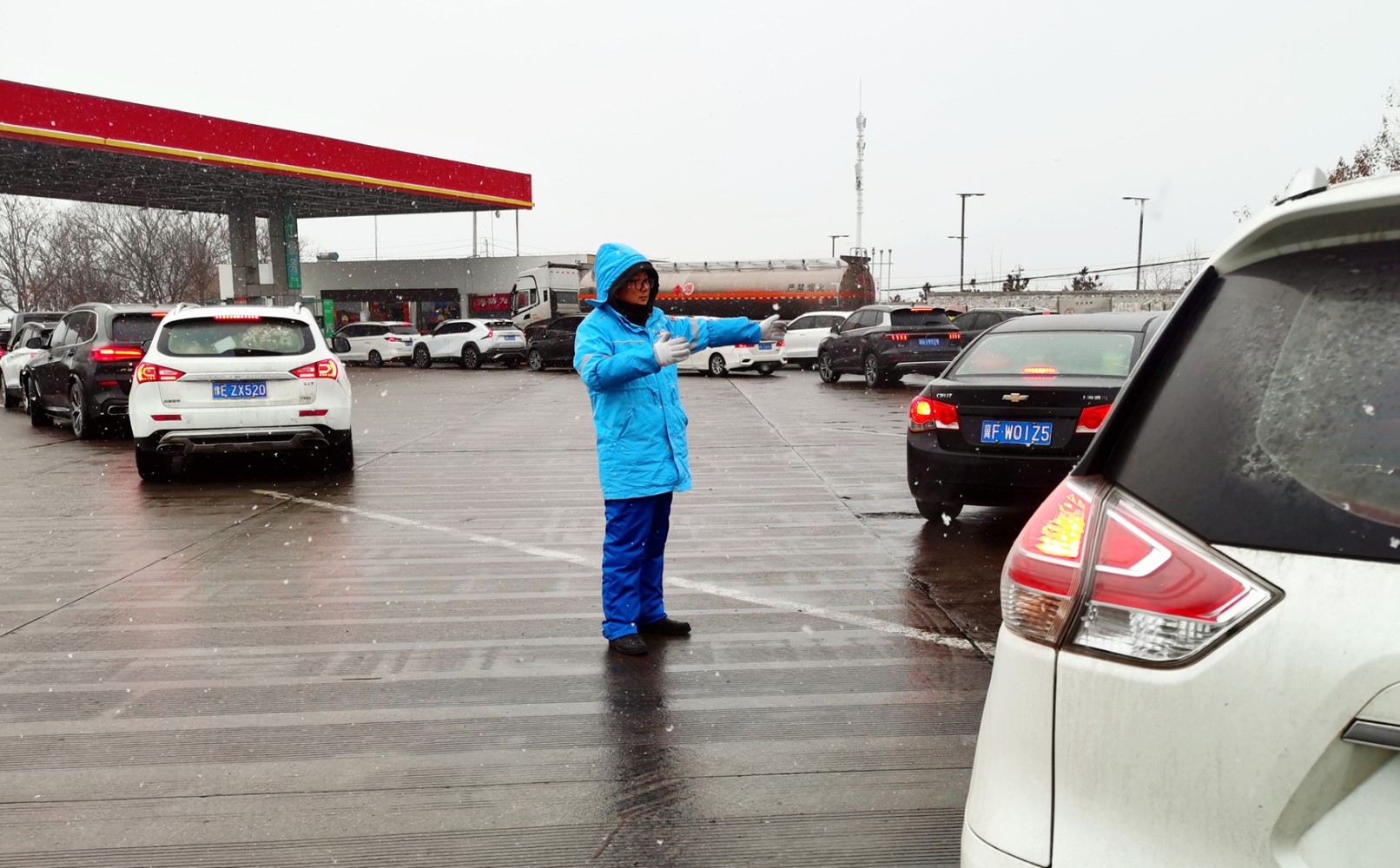 一是清掃站內(nèi)積雪,及時(shí)撒布融雪劑,鋪設(shè)防滑墊、放置安全提示標(biāo)志,提醒過(guò)往司乘注意安全;二是密切關(guān)注天氣變化,及時(shí)了解路況信息,嚴(yán)格落實(shí)24小時(shí)值班制度,暢通信息渠道,加大惡劣天氣時(shí)段巡視巡查力度,全力保障加油站平穩(wěn)運(yùn)行;三是加強(qiáng)現(xiàn)場(chǎng)管理,高峰時(shí)段組織專人疏導(dǎo)入?yún)^(qū)車輛,保障加油秩序井然有序;四是加強(qiáng)文明服務(wù),為司乘提供免費(fèi)熱飲、休息場(chǎng)所、應(yīng)急藥品、維修工具、擦拭車窗車牌、添加玻璃水等暖心服務(wù),展現(xiàn)良好企業(yè)形象。