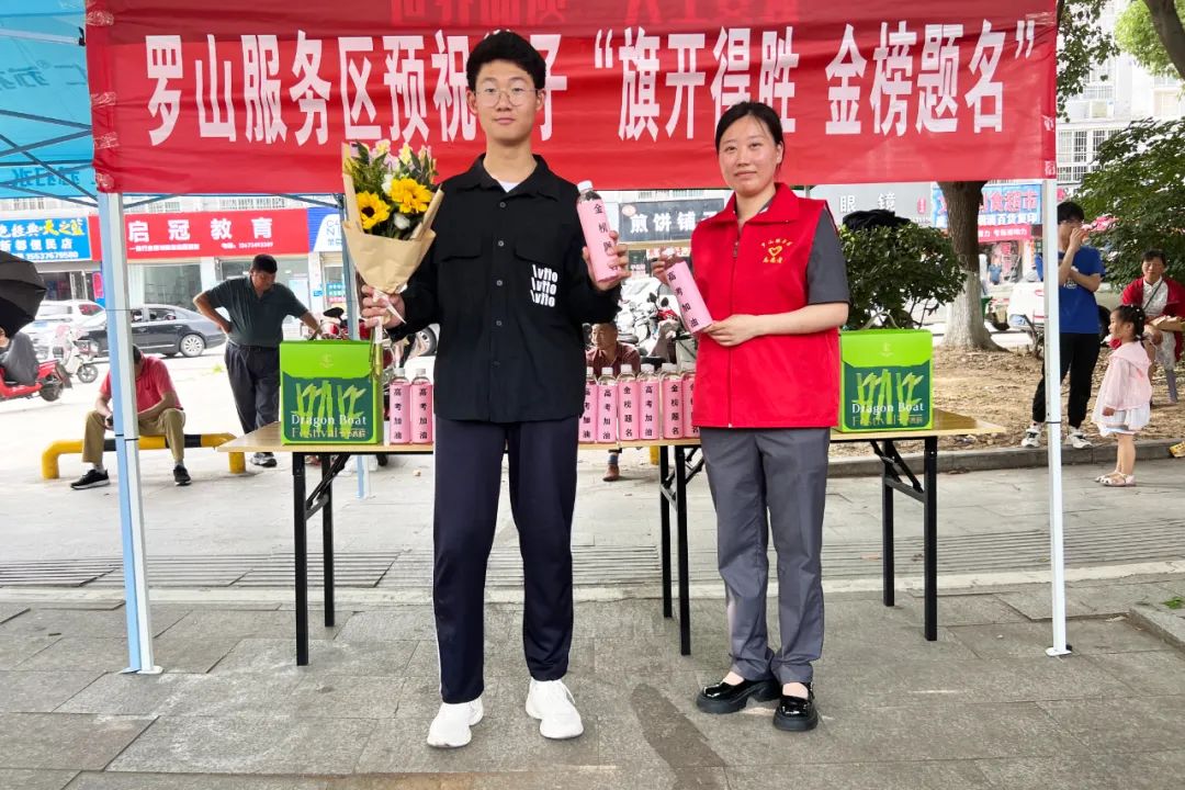 6月8日,羅山服務區為高考考生免費發放礦泉水,協助交警維護秩序