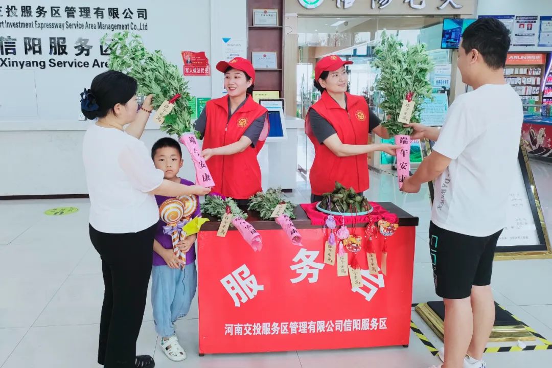 6月8日,信陽服務區開展為司乘送粽子、送艾草、送香包活動