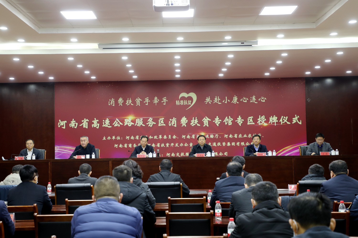 為深入貫徹落實(shí)黨的十九屆五中全會(huì)精神,繼續(xù)做好河南省高速公路服務(wù)區(qū)消費(fèi)扶貧工作,12月22日,由省發(fā)改委、交通運(yùn)輸廳、農(nóng)業(yè)農(nóng)村廳、商務(wù)廳、扶貧辦,河南交通投資集團(tuán)聯(lián)合主辦,公司承辦的“河南省高速公路服務(wù)區(qū)消費(fèi)扶貧專館專區(qū)授牌儀式”在鄭州北服務(wù)區(qū)隆重舉行。