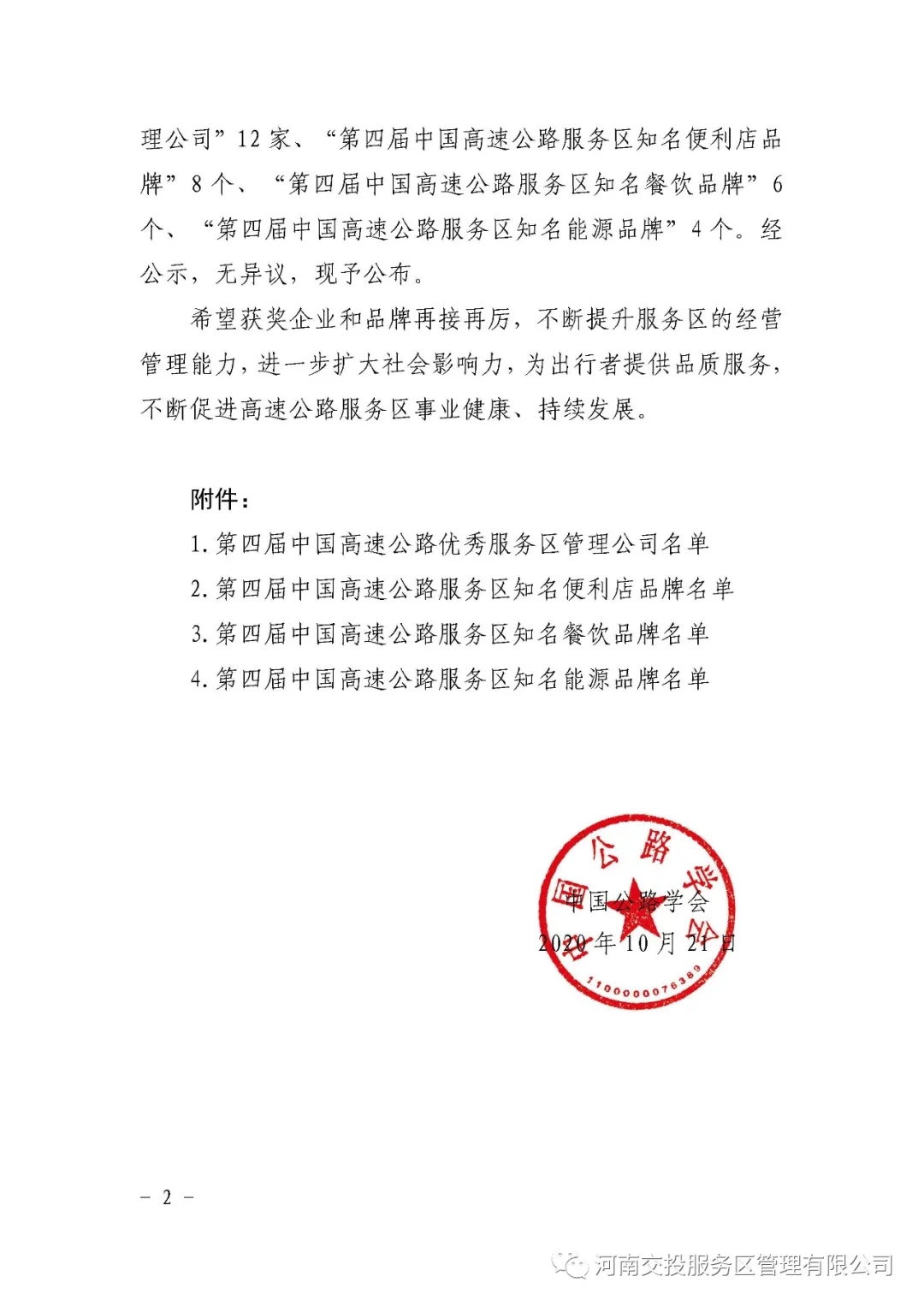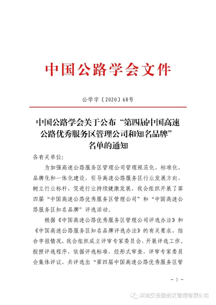 近日,由中國公路學(xué)會(huì)組織開展的第四屆“中國高速公路優(yōu)秀服務(wù)區(qū)管理公司”和“中國高速公路服務(wù)區(qū)知名品牌”評(píng)選活動(dòng)已圓滿結(jié)束,按照評(píng)選程序及標(biāo)準(zhǔn),經(jīng)形式審查,評(píng)審專家委員會(huì)集體評(píng)議,共評(píng)選出12 家“第四屆中國高速公路優(yōu)秀服務(wù)區(qū)管理公司”,河南交投服務(wù)區(qū)管理有限公司名列其中,喜獲殊榮。下一步,公司將在集團(tuán)的正確領(lǐng)導(dǎo)下,不忘初心、再接再厲,持續(xù)提升服務(wù)區(qū)的經(jīng)營管理能力,切實(shí)為出行者提供品質(zhì)服務(wù),不斷促進(jìn)高速公路服務(wù)區(qū)事業(yè)健康、持續(xù)發(fā)展。