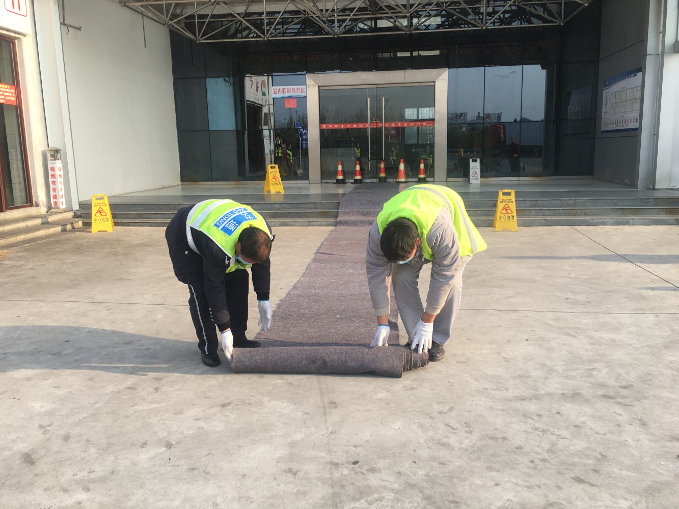 直屬分公司:一是高度重視,迅速部署。各服務區成立應急小組,強化管控責任,做好應急值班值守工作。二是加強預判,提升服務。把安全隱患排查放在突出環節,重點排查服務區設施設備運行情況,積極開展除雪保通應急演練。在經營場所、洗手間出入口及通道提前準備防滑墊、提示牌等,提醒過往司乘注意安全。三是確保物資充足,做好后勤保障。嚴格落實物資臺賬管理,及時掌握物資使用情況,保證除餐廳原材料、雪工具、除雪劑、防寒衣物、藥品、食物、飲用水等不斷檔的同時,做好在服務區內設有快速核酸檢測點防控人員的后勤保障工作。四是有效宣傳引導。利用廣播、LED電子屏、微信公眾號等載體,科學引導廣大司乘雨雪惡劣天氣保持車距、注意防滑、安全出行。五是加大服務區廣場交通疏導員巡查次數,及時疏導車輛。六是保持信息暢通,密切關注天氣變化和氣象預警預報,積極與路政、交警、等部門保持聯系,全力保障群眾安全出行。