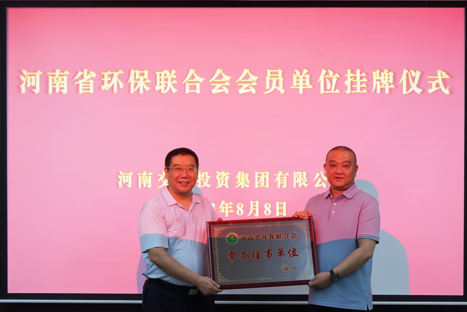 近期,河南省環保聯合會完成第四屆理事會換屆工作,集團當選“副會長單位”,服務區公司當選“常務理事單位”。8月8日,河南省環保聯合會會長李和平一行到集團舉行會員單位授牌儀式。