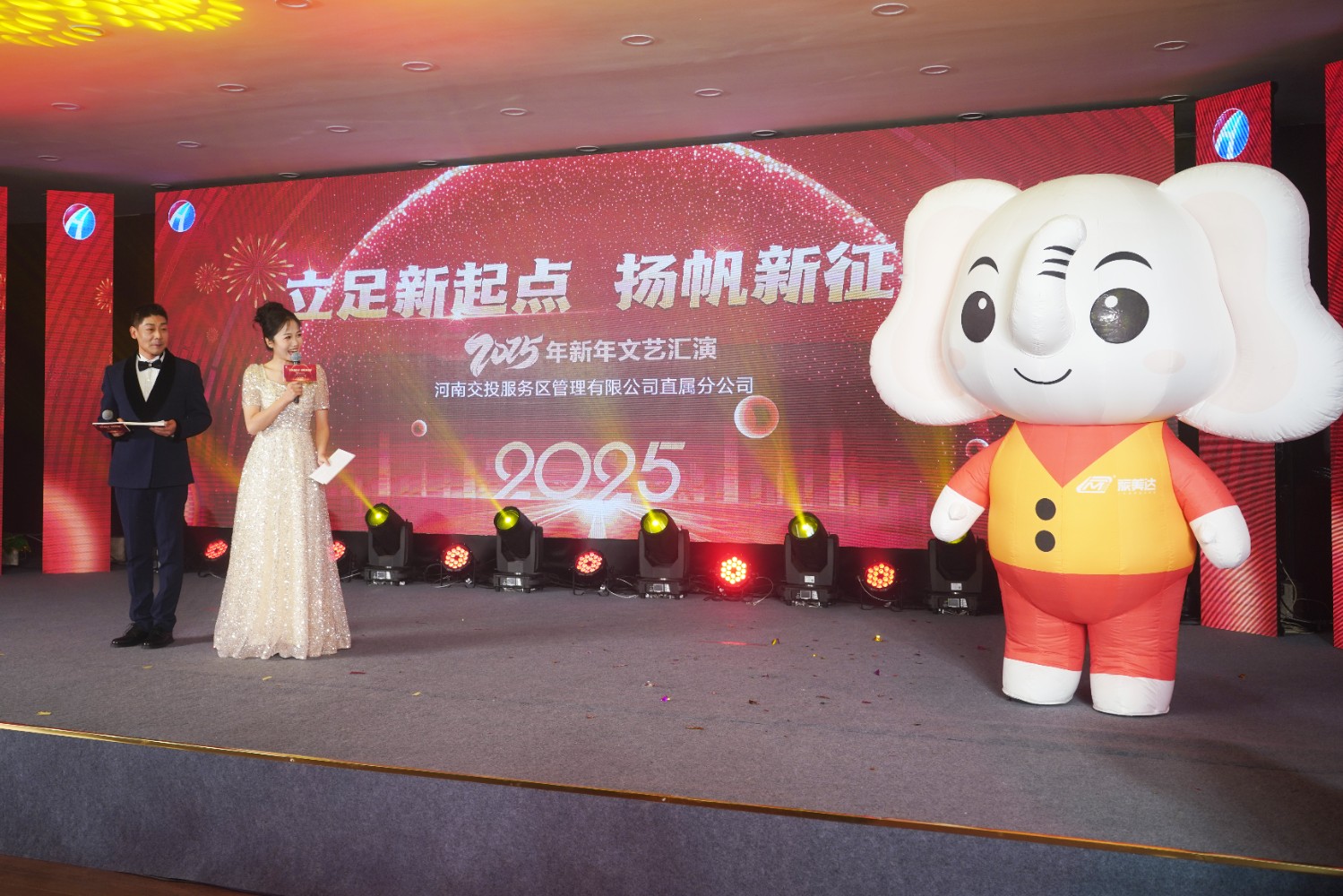 12月31日,直屬分公司“立足新起點 揚帆新征程”2025年慶新年員工風采展示活動在鄭州服務區圓滿舉行。公司黨委書記、董事長谷源,公司黨委副書記、工會主席廖軍,黨委委員、紀委書記陸上行,綜合事務辦公室、黨群工作辦公室、直屬分公司及所屬服務區負責人共200余名干部職工歡聚一堂,共享喜悅。