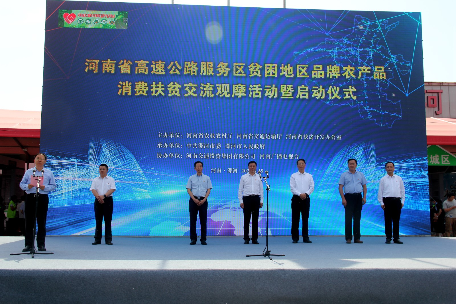 來源: 本站 發布時間: 2020-05-155月15日,“河南省高速公路服務區貧困地區品牌農產品消費扶貧交流觀摩活動暨啟動儀式”在公司漯河服務區正式啟動,標志著我省高速公路服務區農產品消費扶貧行動正式啟動。省農業農村廳廳長申延平宣布活動啟動,漯河市長劉尚進致辭,省交通運輸廳副廳長宋華東、省扶貧辦副主任盧…