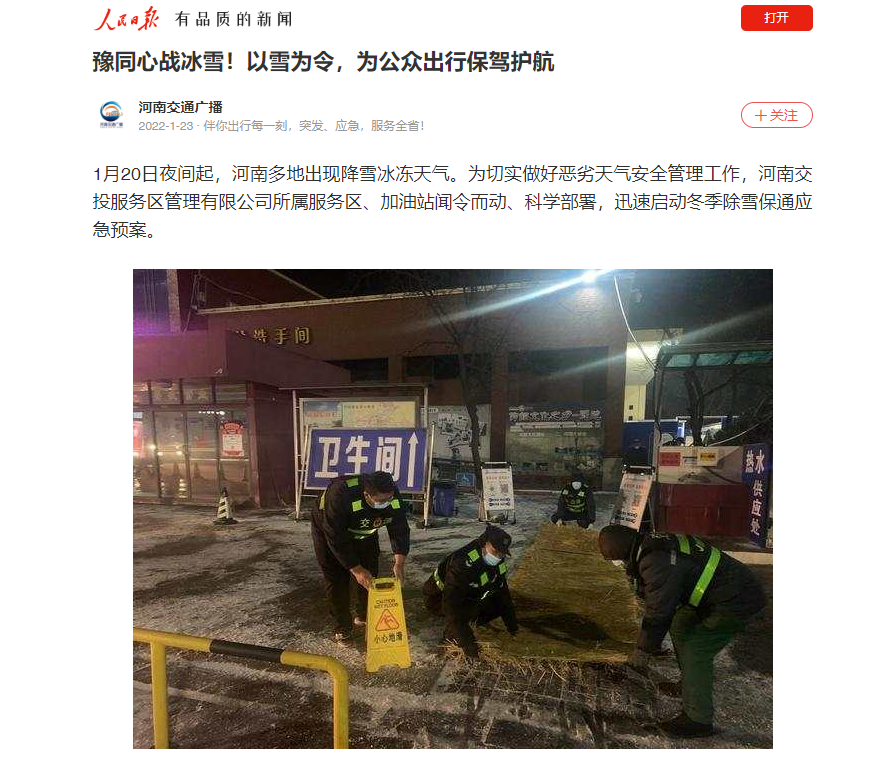 人民日報:豫同心戰冰雪!以雪為令,為公眾出行保駕護航