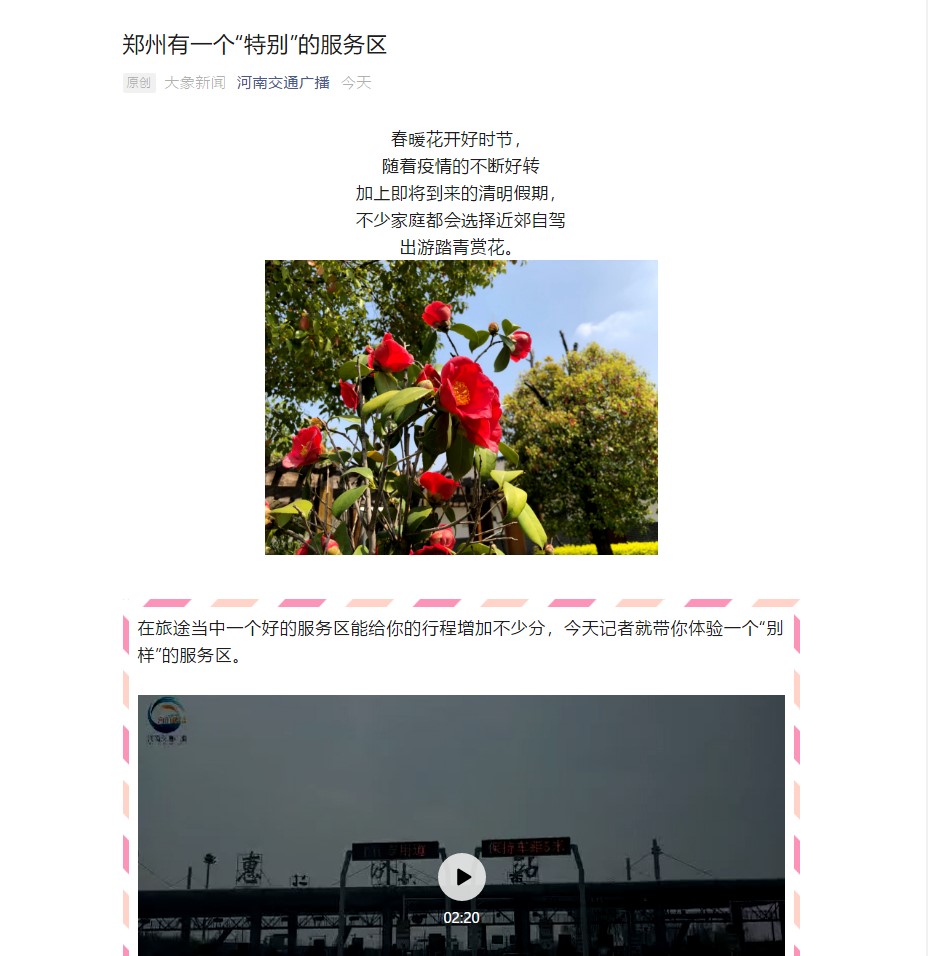 來源: 本站 發布時間: 2020-02-082月7日,中國服務區以題為《河南|抗擊疫情一線,五個“加強”作保障,黨員干部沖在前》對公司疫情防控工作進行了報道。