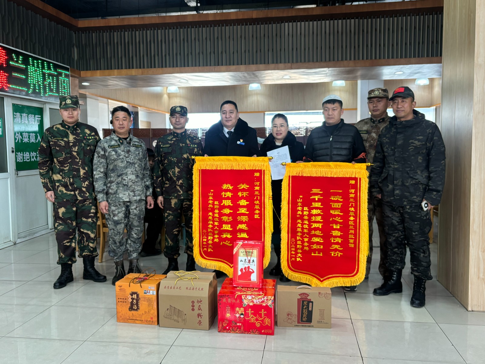 2024-01-26 作者:1月26日,三門峽服務區收到了一份來自山東巨野縣老兵組成的志愿服務隊的特殊“禮物”,感謝先前奔赴災區路過服務區時受到的熱情服務。原來在2023年12月,“山東老兵”志愿服務隊巨野縣大隊援助甘肅臨夏州積石山縣受災區,途經三門峽服務區在蘭州拉面館就餐,服務區用一碗愛心面…