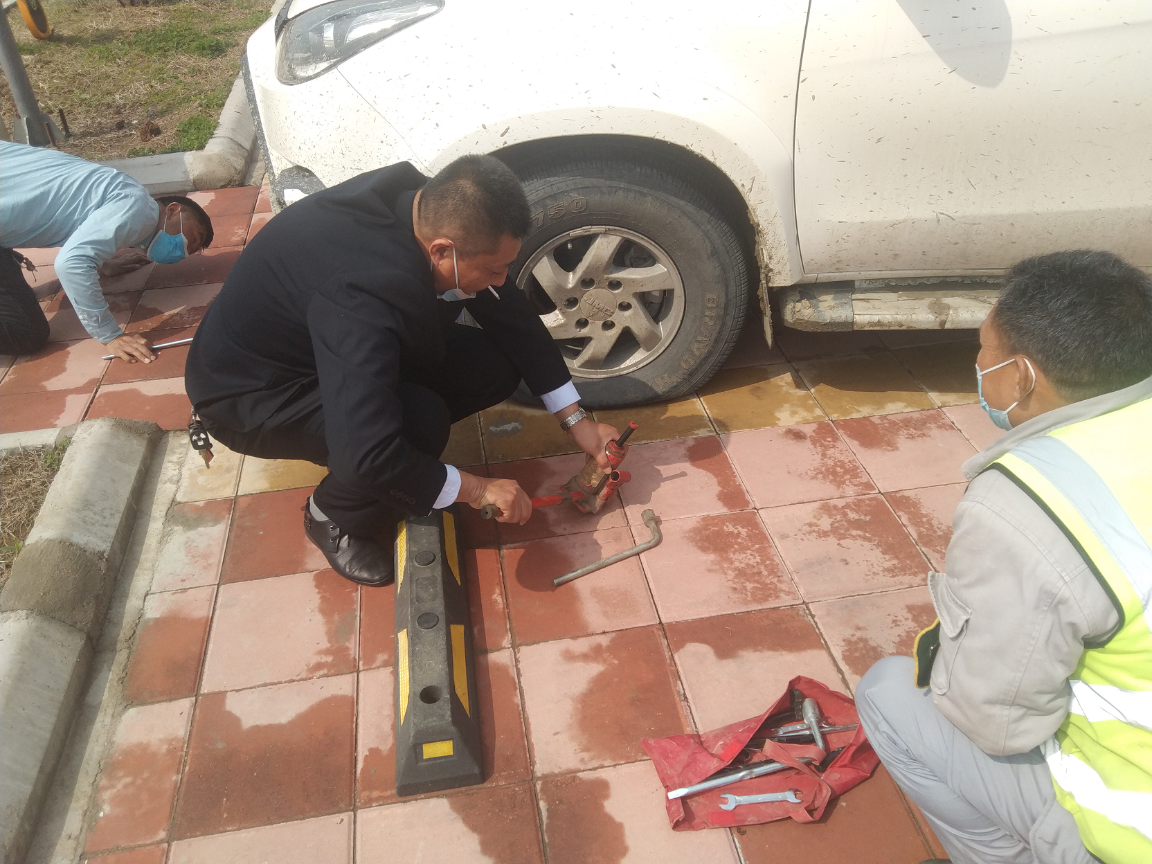 2021-03-29 作者:3月27日,明港服務(wù)區(qū)測溫點(diǎn)值班人員接到一位司乘求助,其車輛爆胎但是缺少工具無法更換輪胎,尋求服務(wù)區(qū)幫助。了解情況后,值班人員迅速聯(lián)系服務(wù)區(qū)駕駛員和水電工攜帶千斤頂及相關(guān)工具前來幫忙,順利更換了備胎,保證了車輛可以繼續(xù)行駛。求助司乘十分感激,連聲道謝,不斷稱贊…