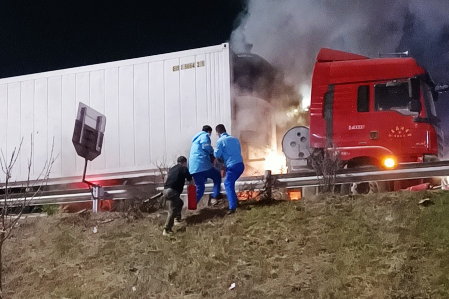 2024-03-27 作者:3月26日晚,一輛車牌號為遼H96T7掛的集裝箱貨車行駛途中發生自燃,緊急停靠在洛陽服務區南半幅高速公路主線應急車道,并向加油站當班人員尋求幫助。因停放地點距離加油站較近,火勢較大有蔓延趨勢,加油站立刻啟動應急預案,撥打119火警電話,組織工作人員跑步趕赴現場滅火。在…