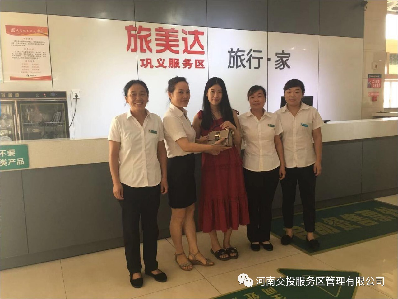 2019-08-29 作者:8月22日下午16時,鞏義服務(wù)區(qū)餐廳員工王玉嬌、張海鶴、李雪芹在日常打掃中發(fā)現(xiàn)餐廳桌子上遺留一個手提包,在尋找失主未果后,三人立即上報餐廳負責人李俊香。