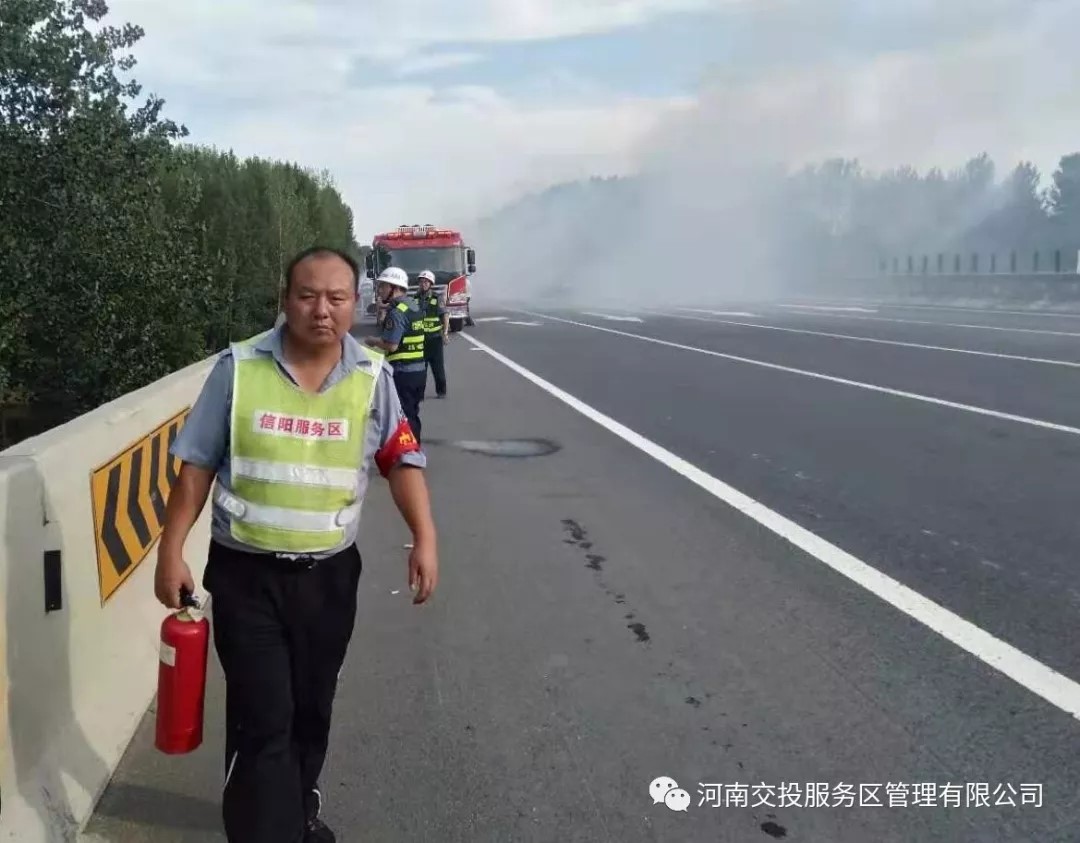 私家車高速自燃 信陽服務(wù)區(qū)熱心相助