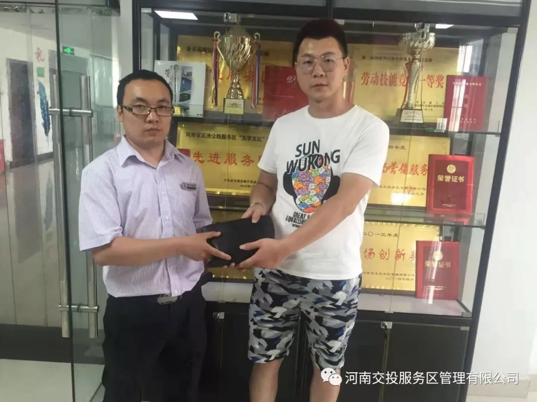 6月27日,鶴壁服務(wù)區(qū)經(jīng)理接到經(jīng)營商戶“北京李先生牛肉面”店長的電話,稱店員閆靜清理餐桌時(shí)發(fā)現(xiàn)一男式手提包被遺忘在店里。服務(wù)區(qū)經(jīng)理立即通知店長將手提包送至辦公室,并安排辦公室人員共同清點(diǎn)包內(nèi)物品。經(jīng)清點(diǎn),共有現(xiàn)金2.9萬元,各類證、卡15張。 正當(dāng)工作人員設(shè)法聯(lián)系失主時(shí),服務(wù)區(qū)辦公室接到河南高速交警九支隊(duì)電話,稱一名顧客在鶴壁服務(wù)區(qū)牛肉面餐館就餐后,將一手提包遺落在餐廳,希望幫忙查找。服務(wù)區(qū)工作人員立即將撿到手提包的消息告知了高速交警,隨后和失主取得了聯(lián)系。1小時(shí)后,失主張先生焦急地趕到服務(wù)區(qū),服務(wù)區(qū)工作人員和高速交警共同確認(rèn)失主身份后,將手提包物歸原主。失主張先生拿到失而復(fù)得的手提包,激動(dòng)得連連道謝,當(dāng)場拿出一疊現(xiàn)金以示感謝,被工作人員婉言拒絕。張先生稱:“此次出差是到南陽辦理業(yè)務(wù),里面是公司的公款。如果手提包丟失,真不知該如何向自己公司交待,非常感謝服務(wù)區(qū)工作人員和高速交警的幫助。” 這樣的好人好事在服務(wù)區(qū)已蔚然成風(fēng),服務(wù)區(qū)人用實(shí)際行動(dòng)踐行著雷鋒精神,并努力將這種正能量發(fā)揚(yáng)光大,堅(jiān)定踐行“不忘初心、牢記使命”活動(dòng)部署,形成學(xué)習(xí)先進(jìn)、爭當(dāng)模范的良好風(fēng)尚。